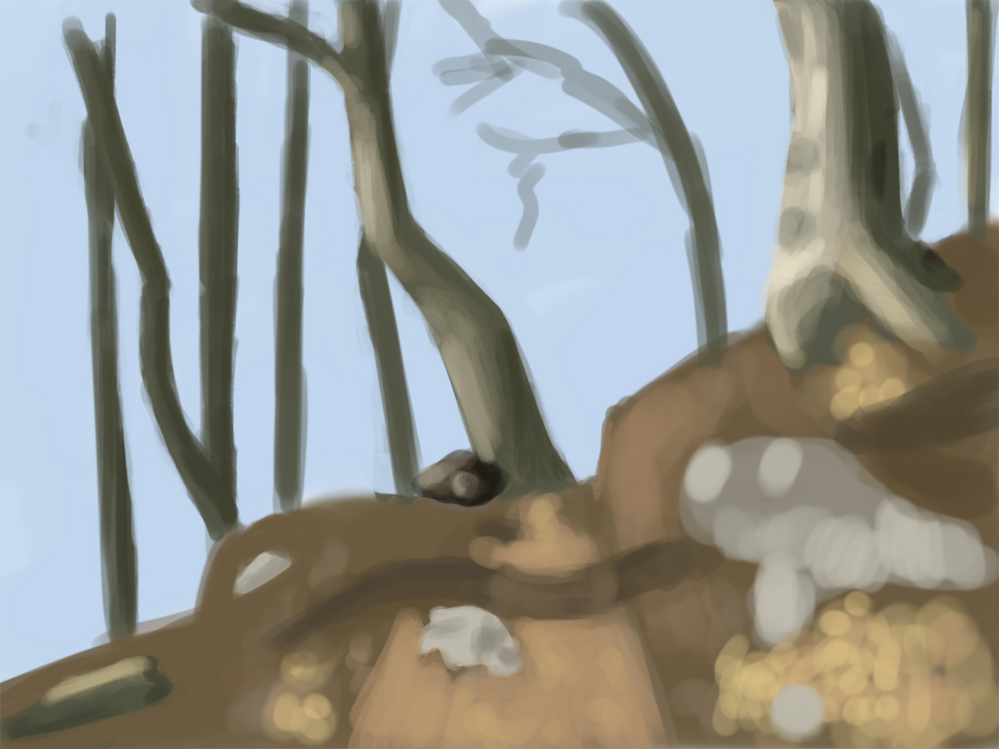 Still trucking along. It doesn't look like I did much :< I mainly did color touch ups like widen the path, change the shadow and added shadows and highlights to the rest of the trees. Grass and leaves will be the last thing I do.